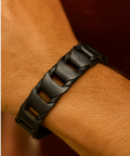 The Blackcoil Leather Bracelet by Mason Tellers is a minimalist statement built with strength and style.